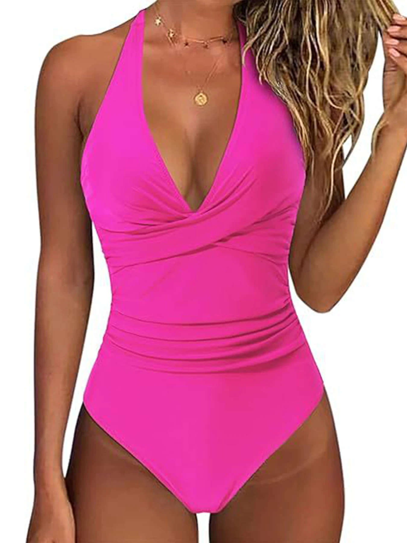 2025 New Arrivals Halter Strappy Swimwear Women Plus Size One Piece Swimsuit Female Cross Bathing Suit Beachwear Swimming Suit