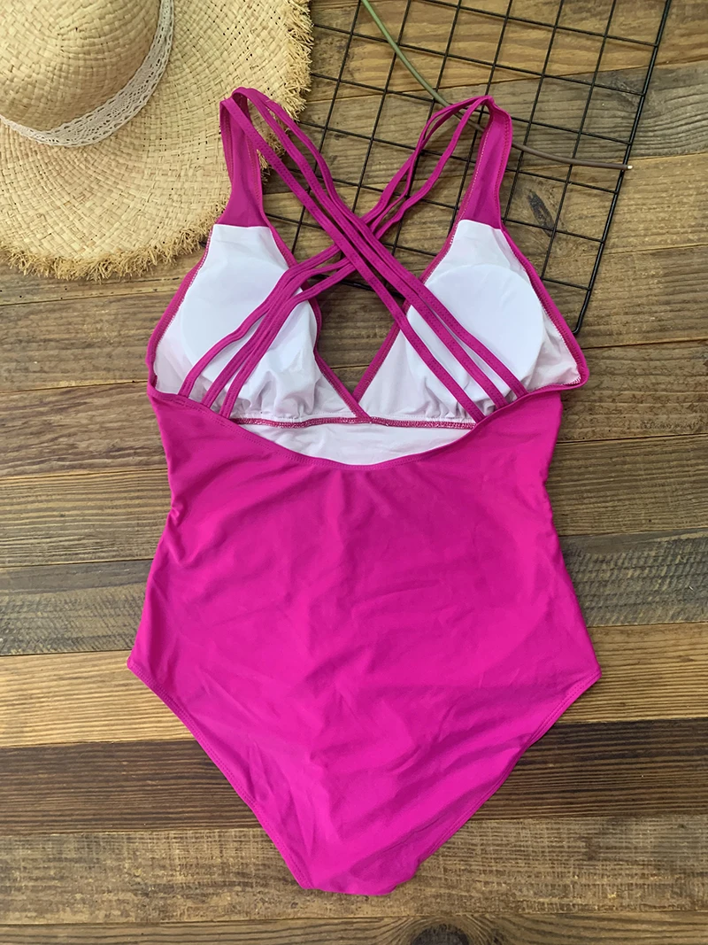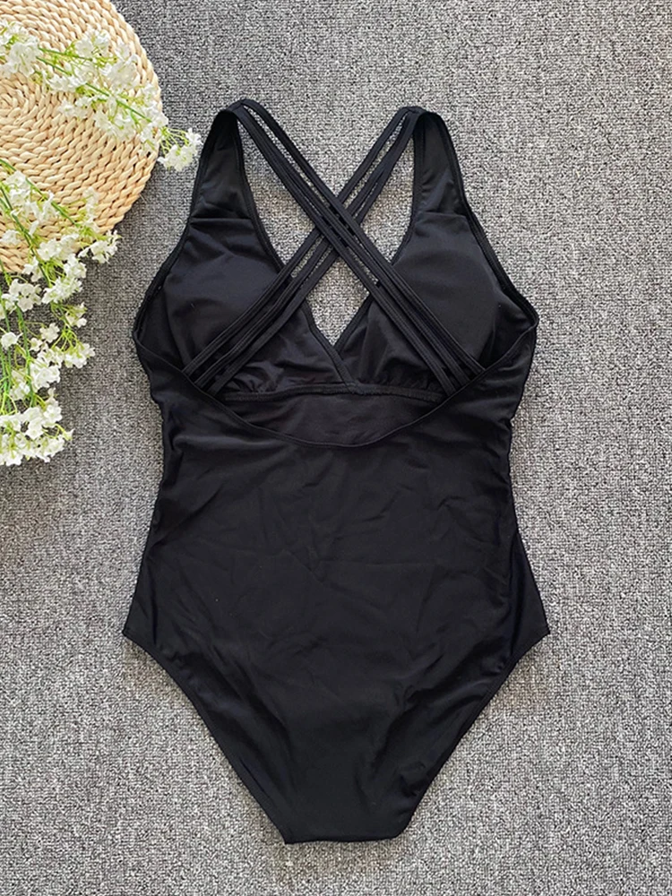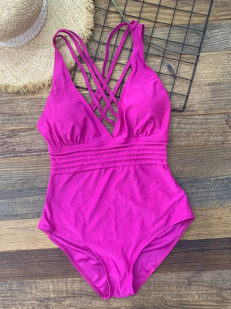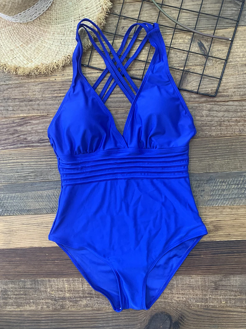 Solid Vintage One Piece Swimsuit Full Whole Swimwear 2023 New Cross Bandage Backless Vintage Monokini Swimming Suit for Women