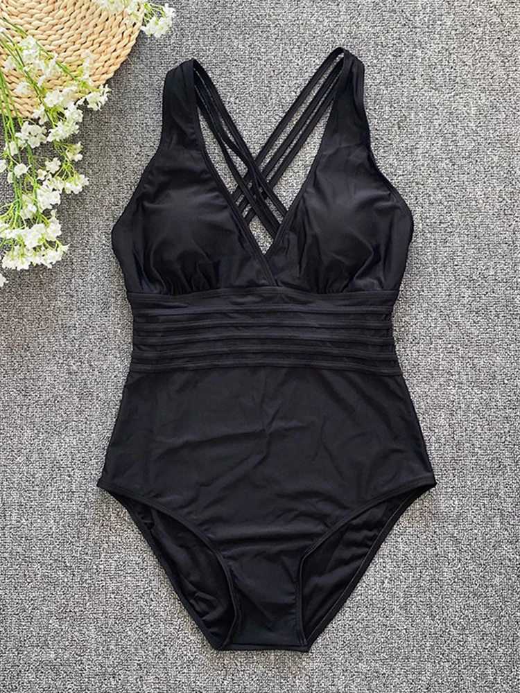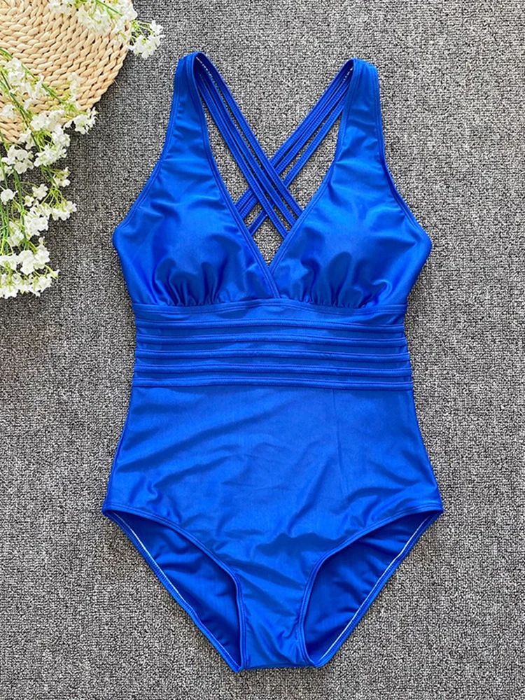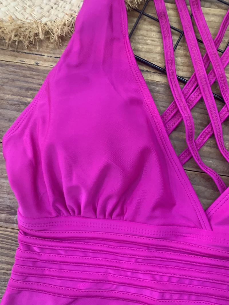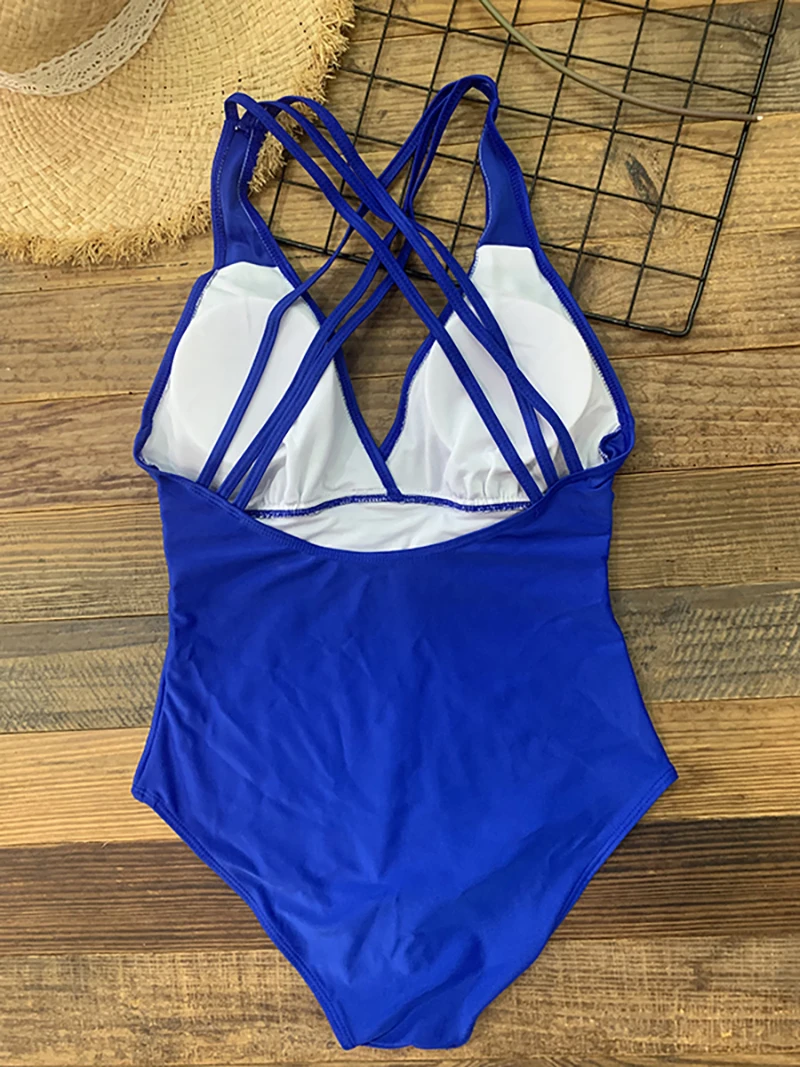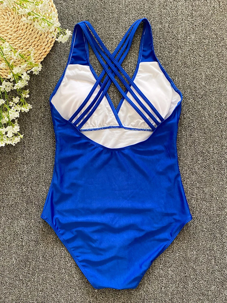 Solid Vintage One Piece Swimsuit Full Whole Swimwear 2023 New Cross Bandage Backless Vintage Monokini Swimming Suit for Women