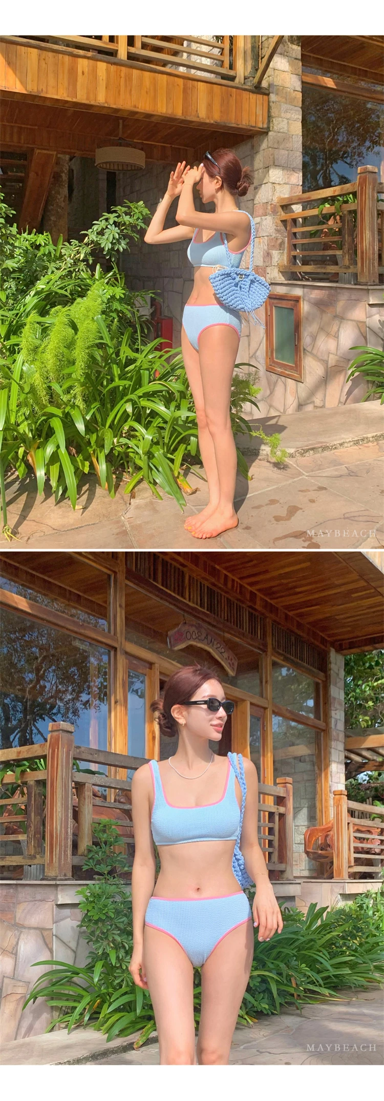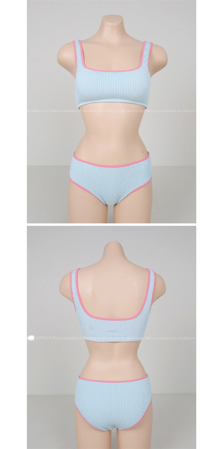 Source Factory INS Vintage Tank Top Simplified Split Swimwear Female Macarone Summer Vacation Hot Spring Bikini