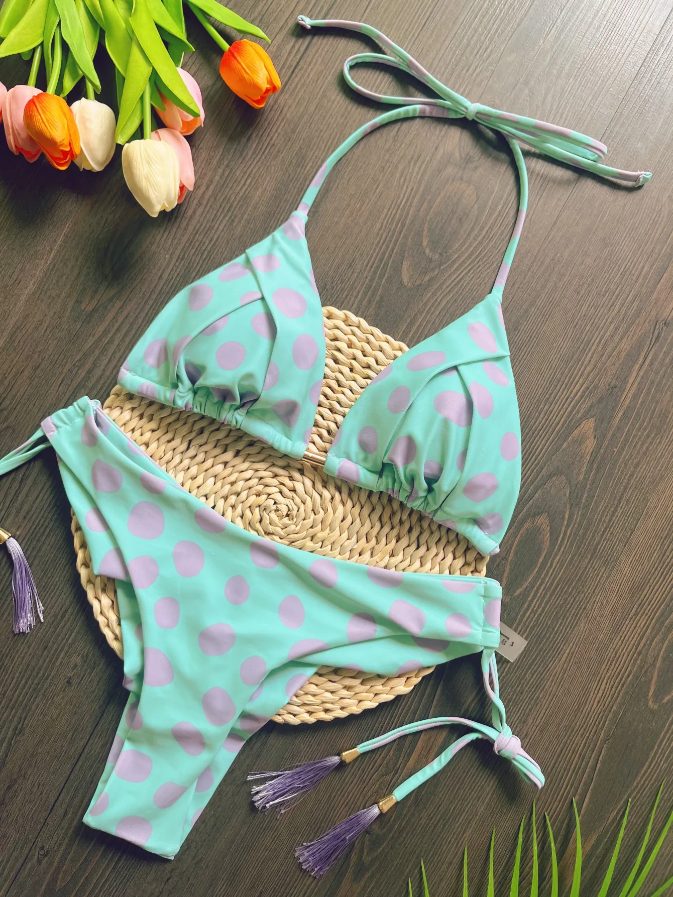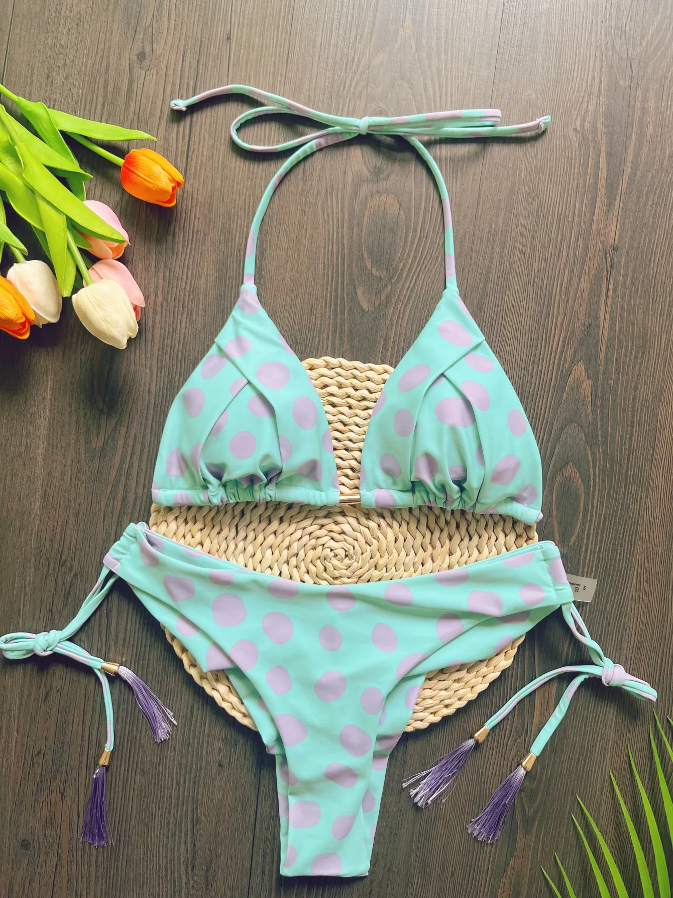 Swimsuit Women Print Sexy Bikinis Set Lace Up Beachwear Summer Swimwear Female Two-pieces Thong Swim Bathing Suits