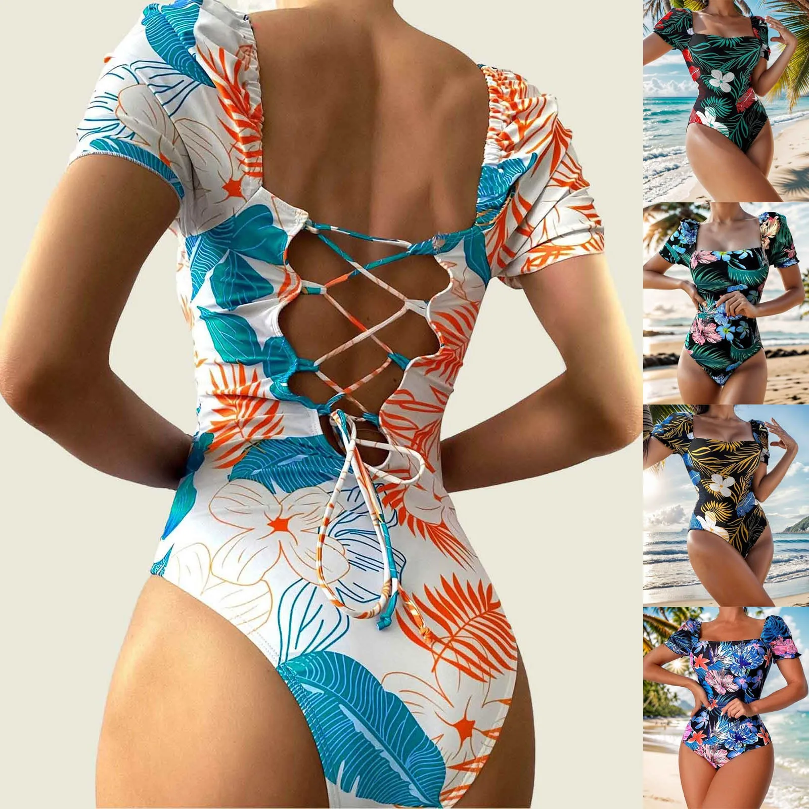 Women Fashion Swimsuit Printed Flower Triangle Bikini Strap Sexy Swimsuit
